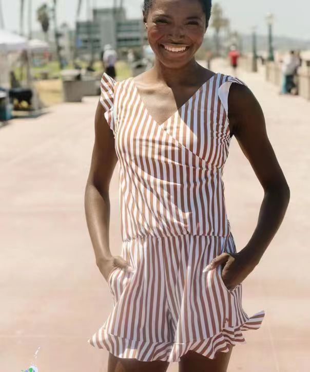 Der Swim Romper hat einen gekreuzten V-Ausschnitt, Rüschen an Schultern und Saum und ist stillfreundlich für Mütter. Dies schafft einen schmeichelhaften Look mit Stil, mit Rüschen an den Ärmeln und Shorts für einen raffinierten, tropisch inspirierten Look.