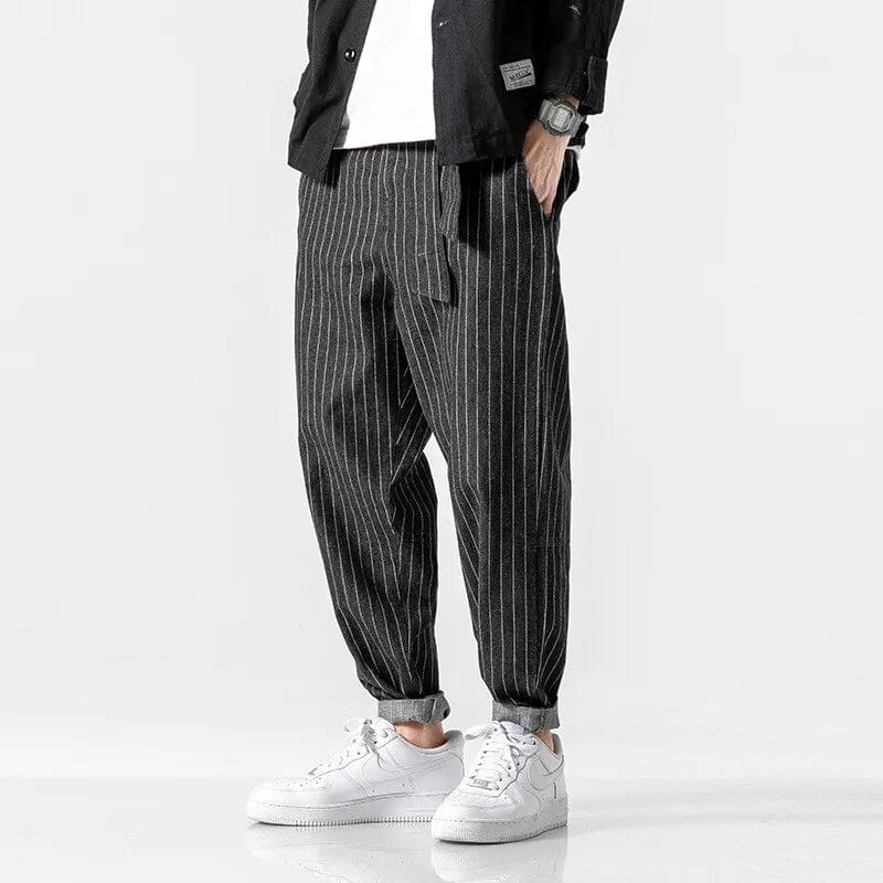 Det er et superbehageligt par jeans med fremragende stræk, der er lavet af fremragende polyesterstof, der holder sin form hele dagen. Det har en snøre-lukning med lommer og et design med lodrette striber, der vil give dig et hip hop-look med en let og behagelig fornemmelse.